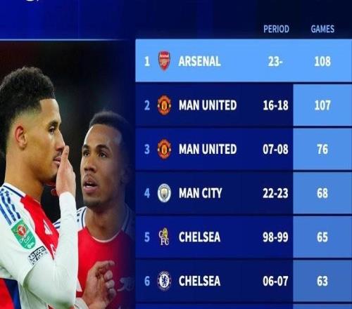 各赛事连续108场比赛未丢3球以上,阿森纳创英超球队纪录
