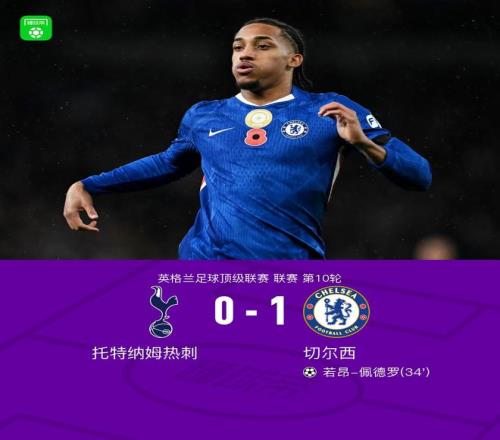 北京时间11月2日,英格兰足球超级联赛第10轮,托特纳姆热刺主场迎战切尔西。上半场,凯塞多抢断后助攻,若昂-佩德罗破门。下半场最后时刻,吉滕斯和若昂-佩德罗相继错失良机。全场比赛结束,切尔西1-0客场击败热刺。
