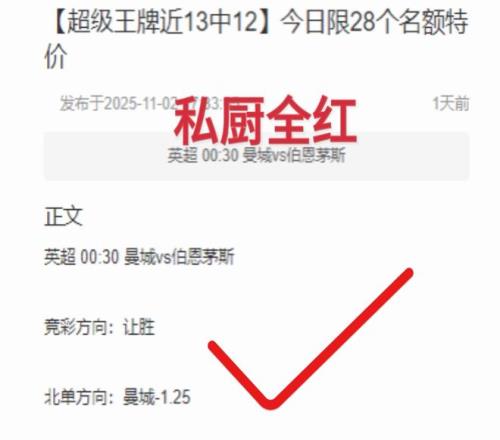 前日公推埃尔切再次成功拿下!私厨全红!超级王牌曼城稳稳拿下!福利场次AC米兰成功拿下!今日PP有料团队调整状态继续奉上足球赛事/澳超等精选赛事!同时想了解更多详细内容可添加下方客服!