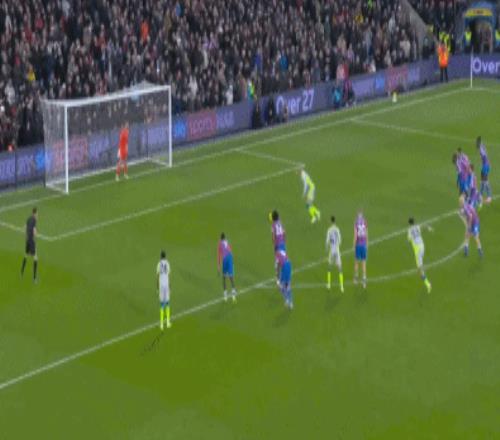 事实也的确如此,水晶宫开场之后不断创造出破门良机。比赛的第16分钟,沃顿直塞,皮诺单刀突入禁区右脚劲射击中横梁。